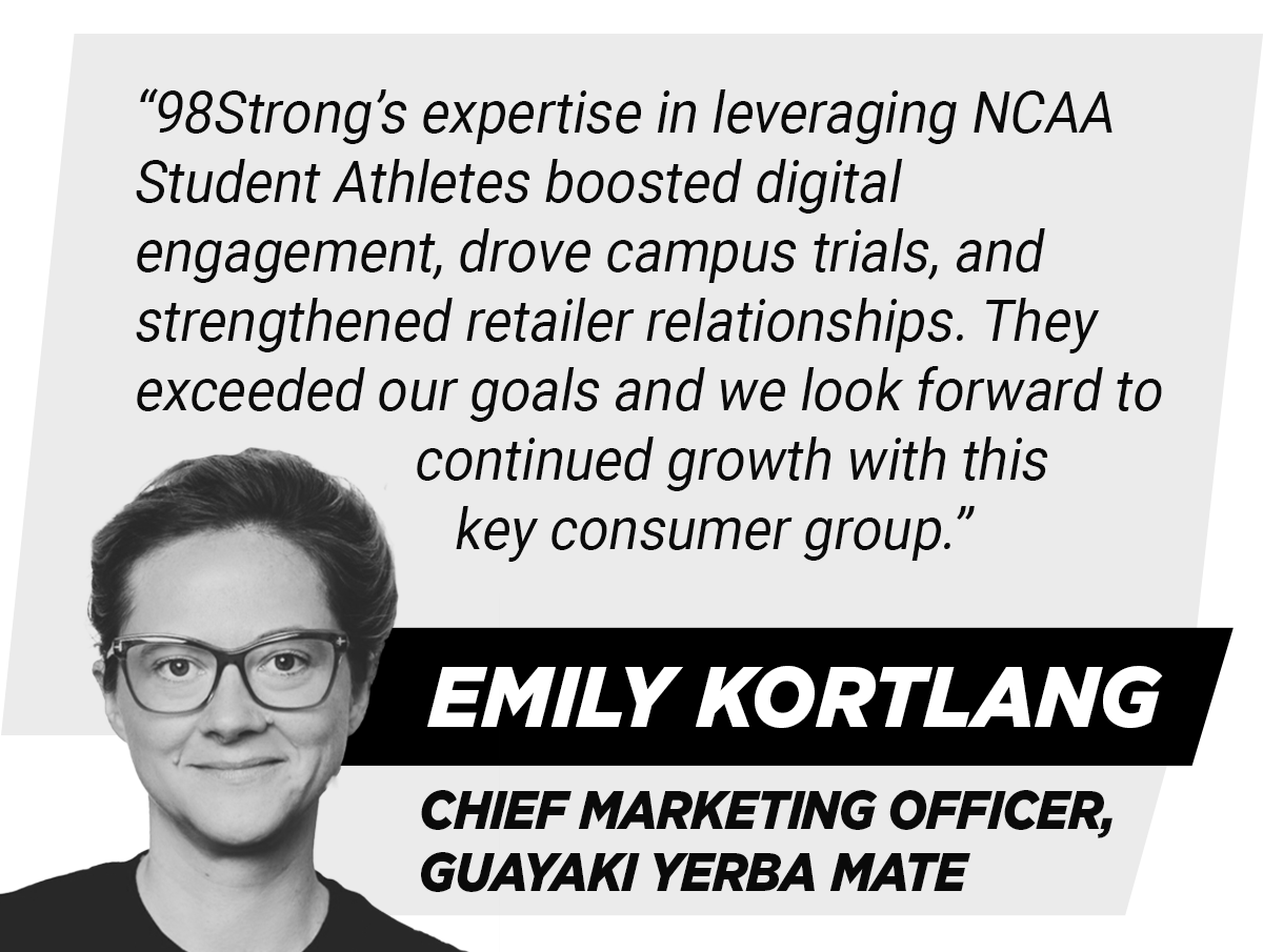 98Strong executed an omni-channel marketing strategy for Guayaki, activating 250+ NCAA Student Athletes across 32 universities. This approach…